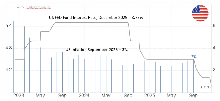 ดอลลาร์สหรัฐฯ อ่อนค่า (US Depreciation) เป็นปัจจัยหลักจากการที่ธนาคารกลางสหรัฐฯ (Fed) เริ่มวัฏจักรการ "ลดดอกเบี้ย" อย่างชัดเจนเพื่อประคองเศรษฐกิจสหรัฐฯ ที่เริ่มชะลอตัว ทำให้เม็ดเงินไหลออกจากดอลลาร์เพื่อหาผลตอบแทนที่อื่น ประกอบกับอัตราเงินเฟ้อของสหรัฐฯ ก่อนหน้านี้อยู่ที่ร้อยละ 3 เริ่มปรับตัวลดเมื่อเทียบกับช่วงฟื้นตัวหลังโควิด-19 ที่ขึ้นไปสูงถึงร้อยละ 9