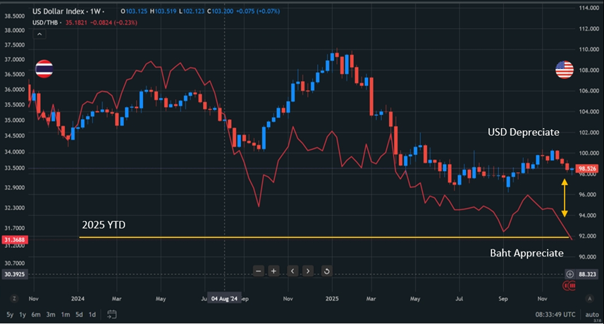 สถานการณ์ปี 2025 ค่าเงินบาทแข็งค่าขึ้นอย่างมีนัยสำคัญ ทำสถิติแข็งค่าสุดในรอบ 4 ปี นับตั้งแต่ปี 2021