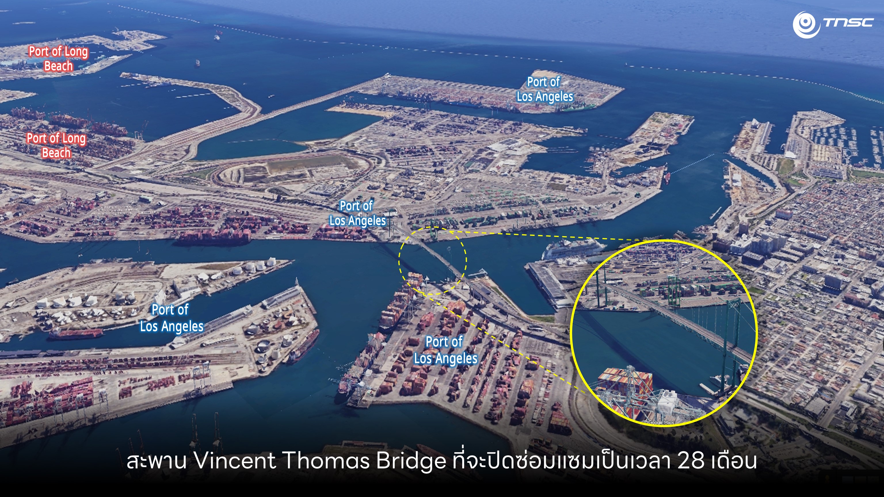 โครงการปิดปรับปรุง Vincent Thomas Bridge สะพานแขวนเก่าแก่แห่งท่าเรือ Los Angeles และ Long Beach (LA/LB) กำลังกลายเป็นประเด็นร้อนที่วงการโลจิสติกส์ต้องจับตามองในปี 2026